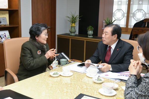 최민호 세종시장은 ‘2023년 윤 대통령 설맞이 연하장’에 담긴 글씨체 주인공인 홍 할머니를 17일 집무실로 초대했다.