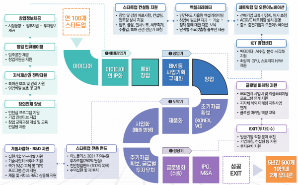 5년간 500개 스타트업과 10년 내 2개 유니콘 기업 발굴을 목표로 우수한 스타트업을 적극적으로 선발하고 선별된 스타트업에 전문투자자와의 연계 시스템을 마련해 안정적인 성장을 지원한다는 계획이라고 전했다.