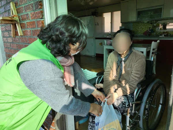 행복키움지원단원들은 천안시복지재단 지원사업비로 마련한 떡국 떡을 홀몸 어르신과 저소득 취약 가구 등에 전달하며 안부를 살폈다.