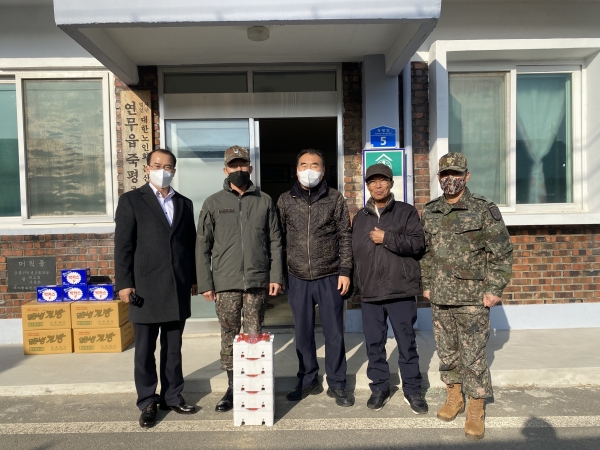 [Ytv영상스토리] 이용환 육군훈련소장이 부임 이후 첫 계묘년 설 명절을 앞둔 19일 부대 인근의 연무읍 황화리, 죽평리 등 6개 마을회관을 방문해 위문품을 전달했다.