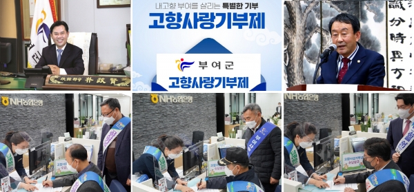 현장기부는 전국 농협 어디에서나 부여군으로 기부가 가능하고 온라인 기부는 ‘고향사랑e음’으로 검색해 접속 후, 부여군을 선택해 기부할 수 있다.