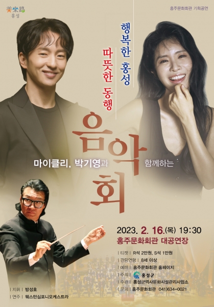 [Ytv영상스토리] 홍성군 홍주문화회관이 계묘년 새해를 맞아 군민 화합과 행복을 기원하는 “마이클 리, 박기영과 함께하는 따뜻한 동행 행복한 홍성 음악회”를 2월 16일 저녁 7시 30분에 개최하고 오는 1월 31일 오전 10시부터 티켓판매를 시작한다고 밝혔다.