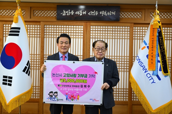 김 총장은 고향사랑기부제 연간 기부 최고액인 500만원을 기부하며 “내 고향 논산의 번영과 시민행복에 뜻을 보태고자 고향사랑기부제에 동참하게 됐다”는 배경을 밝혔다.
