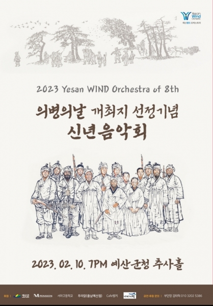 이번에 열리는 정기연주회에는 예산군이 제13회 대한민국 의병의 날 기념행사 개최지로 선정됨을 기념하는 신년음악회로 진행되며 특히 이번 연주회는 윈드오케스트라만이 가진 화려한 음악으로 관객들의 눈과 귀를 사로잡을 전망이다.