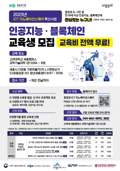 교육장소는 고려대 세종캠퍼스 과학기술대학 1관과 다정동 청년세종 세종ICT이노베이션스퀘어이며 교육과정은 인공지능 7개반, 블록체인 1개반, 데이터 2개반, 사물인터넷 과정 1개반으로 과정별 120~160시간이다.