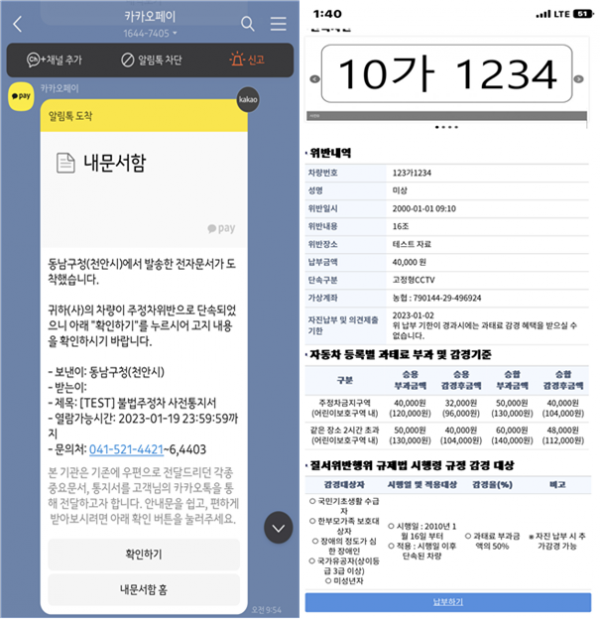 별도 신청 없이 카카오 알림톡, KT공공알림문자로 본인인증 및 동의를 거쳐 불법주정차 과태료 부과 내용을 확인할 수 있다.