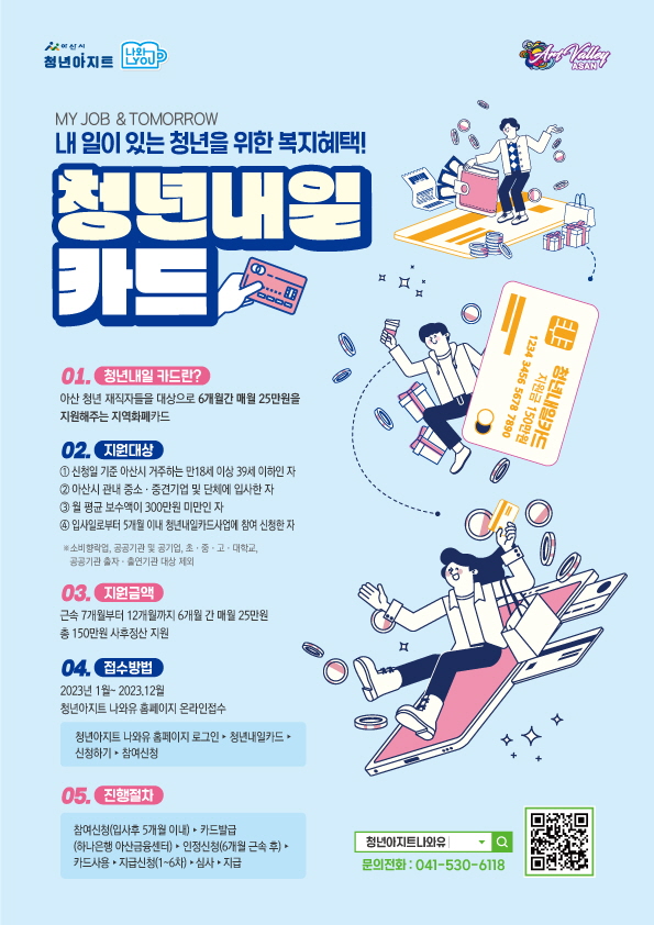 아산시, ‘2023 청년내일카드’ 신청자 모집… 최대 150만원 지원