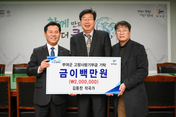[Ytv영상스토리] 부여군은 지난 2일 김동찬 작곡·작사가가 고향사랑기부금 200만원을 기부했다고 밝혔다.