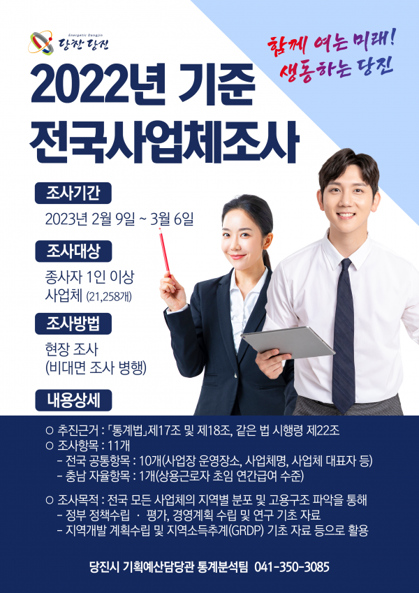 [Ytv영상스토리] 당진시가 2월 9일부터 3월 6일까지 당진시 관내 산업활동을 수행하고 있는 사업체 21,258개에 대해‘전국사업체조사’를 실시한다.