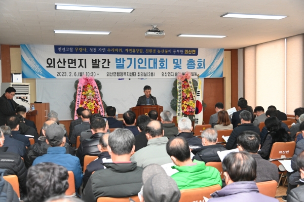 외산면의 역사, 지리, 산업, 경제, 문화, 관광 등의 발전 과정을 면지로 편찬해 외산면민의 위상을 드높임과 동시에 후손에게 애향심과 자긍심을 고취하고자 이번 외산면지 발간 추진위원회를 창립했다.