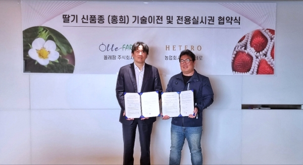 이번에 계약한 신품종 딸기 홍희는 홍성군농업기술센터와 헤테로의 협업으로 10년의 기간에 걸쳐 개발됐으며 2년간의 실증 재배를 통해 내수시장은 물론 미국 수출에도 큰 성과를 이뤄 주목을 받고 있다.