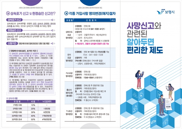 보령시, 사망신고와 관련된 알아두면 편리한 제도 리플릿 제작·배포