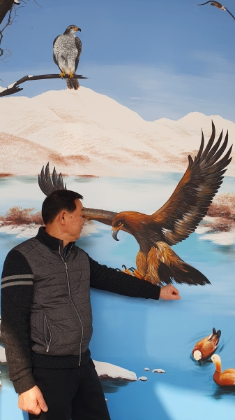 1층에는 검독수리, 큰고니, 왜가리, 황새 등 천수만을 찾는 21종의 희귀 철새들을 그려 넣었으며 4층은 지역 특색을 담은 해당화, 수리부엉이, 갈매기, 가창오리, 간월암 등으로 꾸몄다.