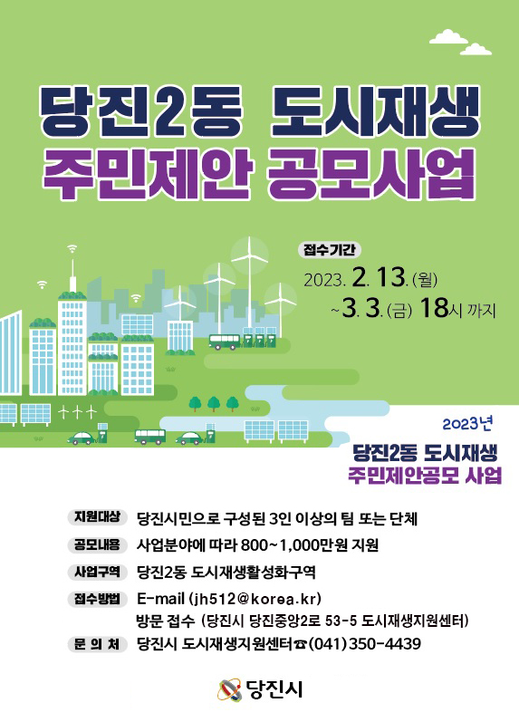 당진시, 2023년 도시재생 주민제안 공모사업 참여자 모집