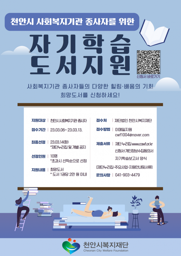 복지재단은 3월부터 11월까지 매월 사회복지기관 종사자의 희망도서를 신청받아 자기학습도서지원을 추진한다.