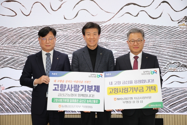 길정섭 부행장은 “추억이 담긴 고향 금산의 발전을 위해 고향사랑기부금을 기탁했다”며 “농협에서도 제도 정착을 위해 적극적으로 협조해 나가겠다”고 말했다.