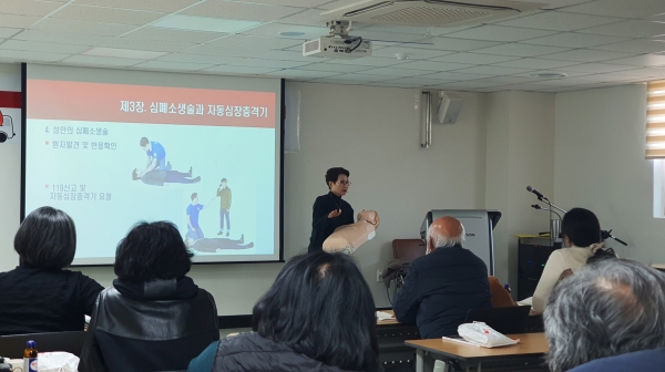 이날 교육에서는 대한적십자사 관계자가 강사로 나서 응급처치 원리 및 필요성 심폐소생술 방법 상처 및 골절 처치 등에 대한 이론과 실습 프로그램을 진행했다.