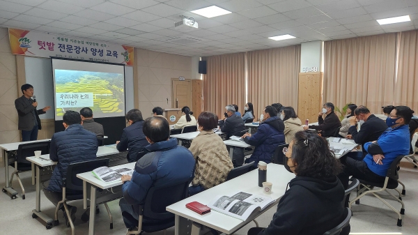 [Ytv영상스토리] 계룡시 농업기술센터는 미래세대 생명농업 가치확산과 도시·치유농업 활성화를 위해 지난 23일부터 오는 3월 23일까지 5회에 걸쳐 텃밭 전문강사 양성 교육을 실시한다고 밝혔다.