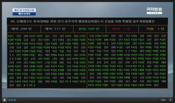 [Ytv영상스토리] -주민위탁사업 확대 법률안 국회 통과, 사업축소에 대한 대체사업 지원 발판 마련-세종시장 고시주체, 건설청과 LH에서 인계한 사업에서 주민지원사업 고시 가능세종시 건설 예정지역 원주민 지원을 위한 행정도시건설특별법 개정안이 27일 국회 본회의를 통과했다.