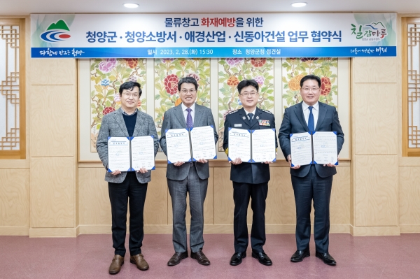 이날 협약식에는 김돈곤 군수와 김희규 청양소방서장, 물류창고 사업주 관계자 등이 참석해 지속적인 상호협력을 약속했다.
