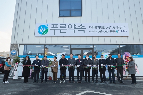 아산지역자활센터 다회용식기세척사업단은 2019년 9월 아산시 최초 자활사업단 세척 사업을 시작으로 2021년 2호점 오픈, 천안의료원과 공주의료원 장례식장 및 도시락업체와 업무협약 등 사업에 총력을 기울인 결과 총사업비 2억원을 투입해 외암로 1385에 총면적 484.39㎡ 규모로 확장 이전하게 됐다.