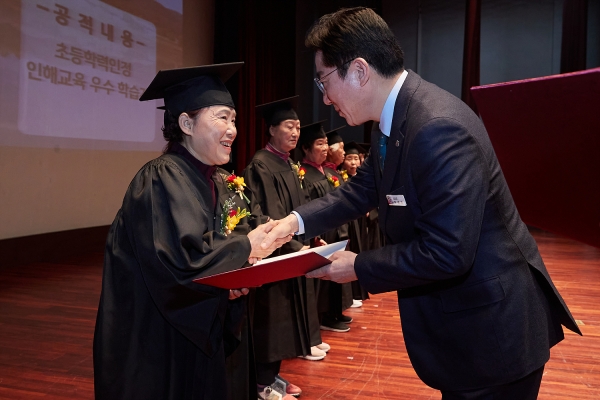 이날 표창을 받은 어르신들은 코로나19가 한창이던 지난 2020년부터 2022년까지 프로그램을 수료하신 분들로 1937년생 최고령 졸업생부터 1950년생 막내 졸업생까지 어려운 시기에도 배움의 끈을 놓지 않고 과정을 수료해 졸업의 영광을 안았다.