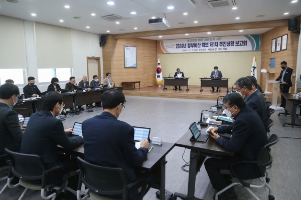 김기웅 군수는 3일 “올해는 민선8기 핵심공약과 군 역점사업의 성과 달성을 위해 총력을 다 해야하는 중요한 시기”임을 강조하며 군청 대회의실에 ‘2024년 정부예산 확보 추진 제1차 추진상황 보고회’를 개최했다.