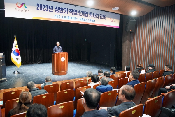 [Ytv영상스토리] 충남 서산시는 6일 최근 직업소개소를 찾는 시민들이 늘어남에 따라 서산시 문화회관에서 직업소개사업 종사자 직무 역량 강화 교육을 시행했다.