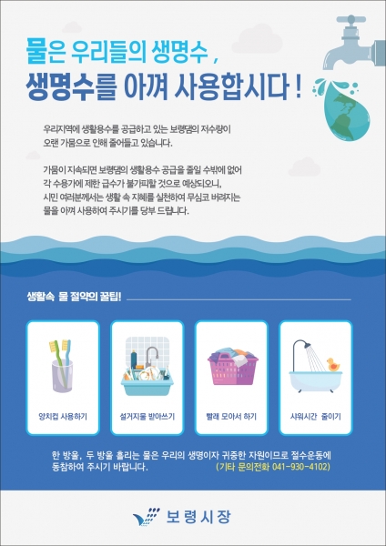 보령시, 봄철 가뭄 극복 위한 생활 속 물 절약 실천 당부