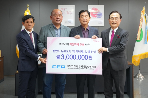천안시 기업인협의회 회원사들이 십시일반 힘을 모은 성금은 천안시 우호도시 뷰첵메제시에 기부돼 튀르키예 정부에 전달될 예정이다.