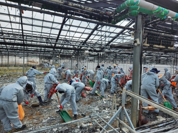 아산시농업인단체, 세계꽃식물원 화재 피해 복구 봉사활동 나서