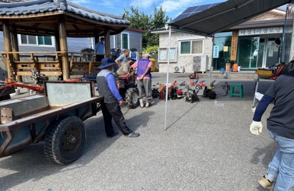 농업기계 순회교육은 오지마을을 대상으로 경운기, 관리기, 동력분무기, 예취기 등 농가에서 많이 사용하는 농업기계를 수리하고 개당 단가 2만원 미만의 부품은 무료로 지원한다.
