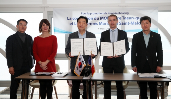 이날 태안군과 협약을 체결한 프랑스의 해양치유 기업 ‘레 테름 마랭 드 생말로’는 1963년 동명의 해양치유센터를 건립·운영하고 1987년에는 수압을 이용한 치료시설인 ‘아쿠아토닉 풀’ 및 스파 시설을 도입해 인기를 끌며 프랑스의 대표 해양치유 기업으로 성장해왔다.