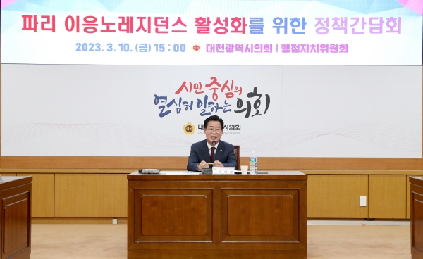 [Ytv영상스토리] 대전시의회 행정자치위원회에서는 10일 오후 3시 시의회 소통실에서 ‘파리 이응노레지던스 활성화를 위한 정책간담회’를 개최해 파리에서 운영 중인 이응노레지던스에 활력과 생기를 불어넣어 대전문화예술의 발전을 도모할 수 있는 방안을 모색하는 자리를 가졌다.