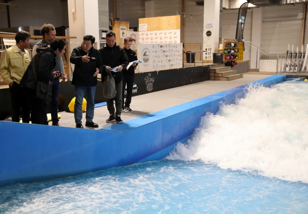 이날 가세로 군수를 비롯한 태안군 방문단은 현장 관계자들과 함께 시설을 둘러보며 세세한 부분까지 살피는 등 알찬 시간을 보냈으며 군은 프랑스의 선진 시설과 콘텐츠를 접목해 국내 최고 수준의 실내서핑 시설을 세우겠다는 방침이다.