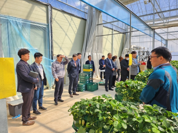 군 농업기술센터는 군청 팀장급 15명이 참석한 가운데 현재 농업정책과 현실을 이해할 수 있도록 과학영농 인큐베이터인 부여군농업기술센터 주요 시설과 스마트팜 영농현장 견학을 추진했다.