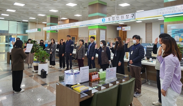 이응우 시장은 “자체 친절 다짐의 날을 통해 민원실 직원들이 친절에 대한 마음가짐을 새롭게 하길 바란다”며 “정중한 인사와 미소는 시민에 대한 존중과 배려의 표시인 만큼 더욱 친절한 민원 응대를 위해 모두가 협력하고 최선을 다해 달라”고 당부했다.