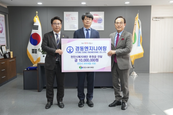 박상돈 천안시장은 “의미 있는 나눔을 실천해 주신 경동엔지니어링 강재홍 대표를 비롯한 임직원분들께 진심으로 감사드린다”며 “천안시는 복지 사각지대에 놓인 취약계층이 없도록 촘촘한 복지서비스 제공에 최선을 다하겠다”고 말했다.