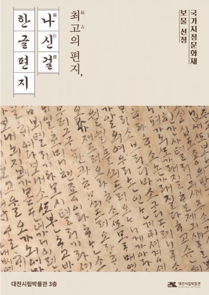 ‘나신걸 한글편지’는 2011년 유성구 금고동 안정나씨 묘 이장시 발견된 문화재로 지금까지 확인된 가장 오래된 한글편지로 인정받아 지난 3월 9일 국가지정문화재‘보물’로 지정 고시됐다.