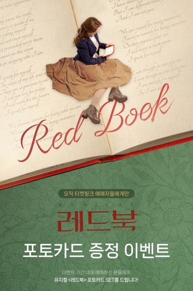 뮤지컬 ‘레드북’ 포토카드 증정 이벤트에 대한 자세한 내용은 티켓링크 홈페이지 및 모바일 앱을 통해 확인 가능하다.