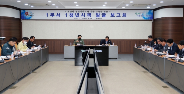 군은 지난 28일 군청 중회의실에서 가세로 군수와 부서장 등 30여명이 참석한 가운데 ‘태안형 청년친화도시 기반 구축을 위한 1부서 1청년시책 발굴 보고회’를 개최했다고 밝혔다.