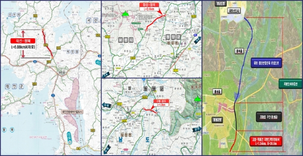 고암-역재 구간은 내포신도시와 홍성 이남권역의 연계성 제고 및 관내 교통량 분산을 위해 1.24㎞를 신설하는 공사로 110억원이 투입된다.