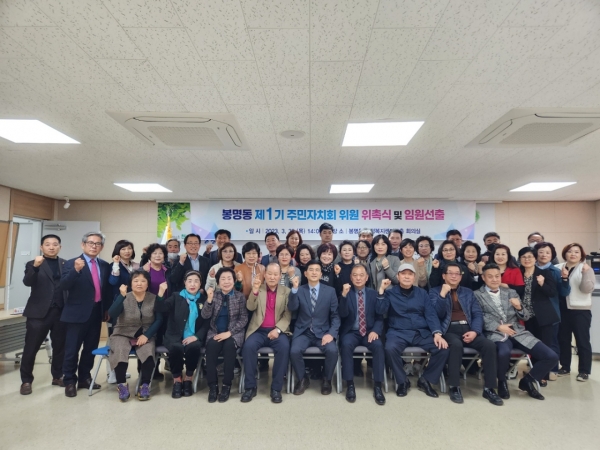 봉명동은 이날 제1기 주민자치회 위원 출범식을 열고 회장으로 윤길상 위원을 부회장으로 이병열 위원을 선출했다.