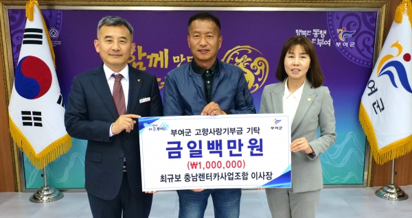 [Ytv영상스토리] 부여군은 지난 31일 충남렌터카사업조합 최규보 이사장이 부여군 고향사랑기부제에 기부금 100만원을 쾌척했다고 밝혔다.
