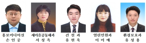 건설과 유현욱 주무관은 소규모 주민숙원사업 합동설계TF팀을 운영해 4억2000만원의 예산을 절감했으며 비법정 공공시설 기부채납 및 토지사용승락서를 사전 징구하는 등 사업 추진에 앞서 민원을 최소화했다.