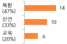 상임위원회별로는 복지환경위원회가 47%로 가장 많았고 산업건설위원회 33%, 교육위원회 20%로 접수됐으며 민원발생지역으로는 중구, 유성구, 서구, 대덕구, 동구 순으로 나타났다.