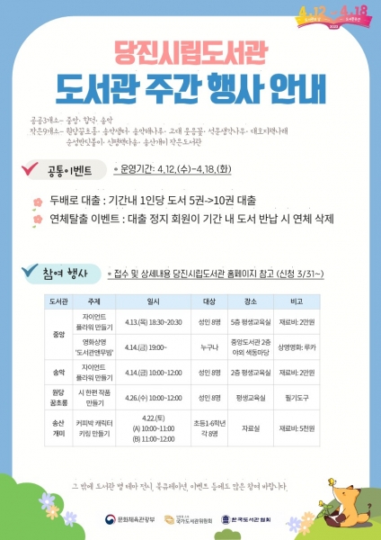 당진시립도서관, 제59회 도서관 주간 기념행사 운영