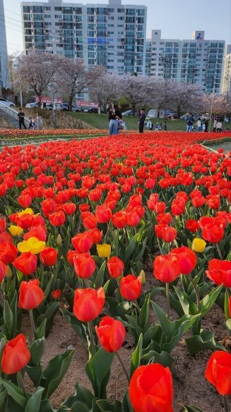 50만 송이의 튤립이 만개하면서 시민들과 외부 방문객들이 발길이 이어지고 있어, 지역경제 활성화에 큰 도움이 될 것으로 기대된다.