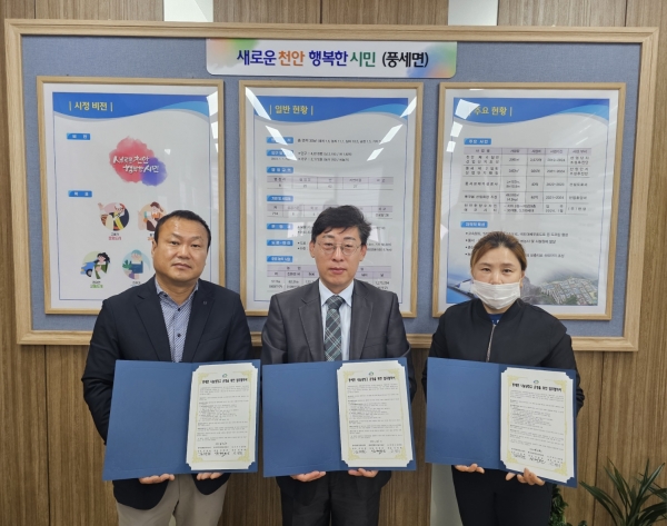 [Ytv영상스토리] 천안시 풍세면은 6일 행복키움지원단, 농가마트 난관점과 나눔냉장고 운영을 위한 업무협약을 맺었다고 밝혔다.