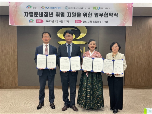 [Ytv영상스토리] 천안시는 6일 시청 소회의실에서 자립준비청년의 취업 지원을 위해 충남아동자립지원전담기관, 천안고용복지플러스센터, ㈜한국커리어잡스와 4자 간 업무협약을 체결했다고 밝혔다.